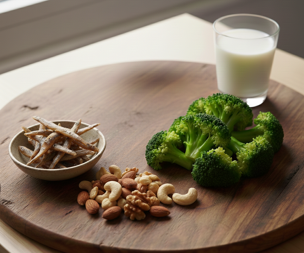- Sumber Terbaik: Selain susu rendah lemak, Anda bisa mendapatkan kalsium dari teri jengki, brokoli, dan kacang-kacangan.